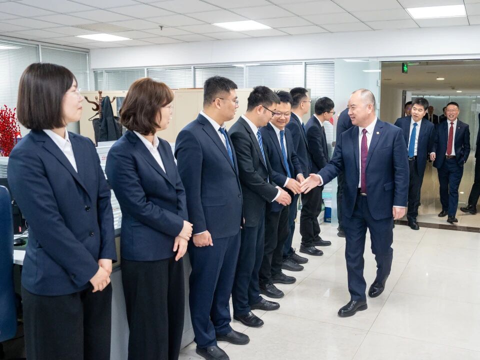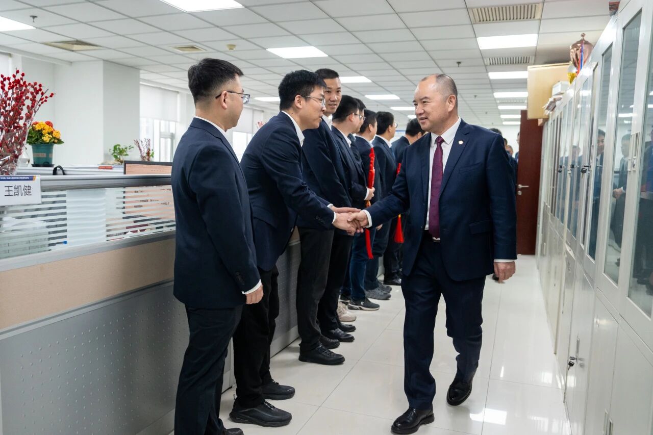 升旗仪式后,一航局党委书记、董事长万军杰率领全体领导班子成员到总部各部门、事业部开展新春慰问。班子成员与总部员工亲切握手、互致祝福,勉励大家在新的一年里锚定目标、实干笃行,以更加饱满的热情投身工作事业。