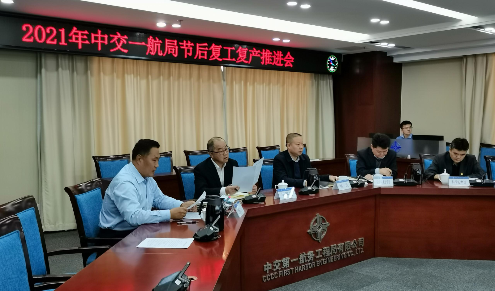 2月22日,中交一航局2021年节后复工达产视频推进会在津召开。一航局副总经理吴凤亮、姚进出席会议。