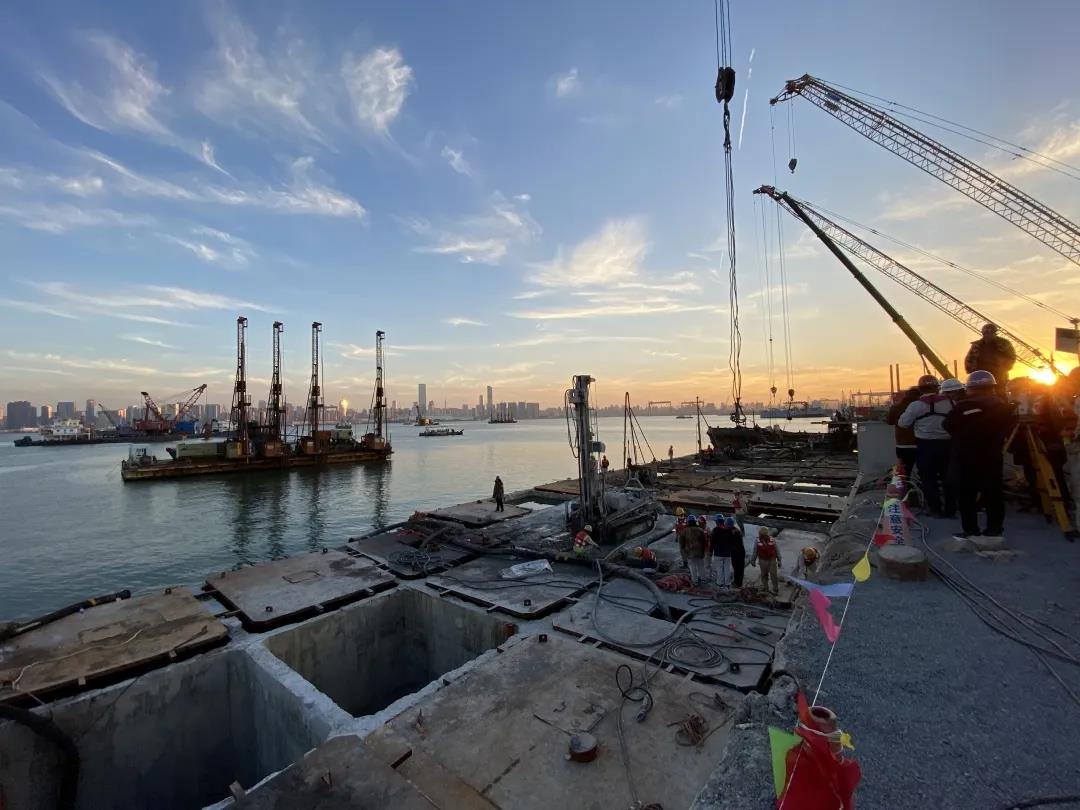 连续熬夜作战的组员们疲惫不堪,可没人顾得上休息,迅速开展排查。原来,沉箱底部企口处由于黏连混凝土过多,被卡住无法动弹。考虑到企口卡住的位置距离陆域很近,大家决定使用功率最强的旋挖钻施工。待混凝土清理彻底后,沉箱终于具备起浮条件。